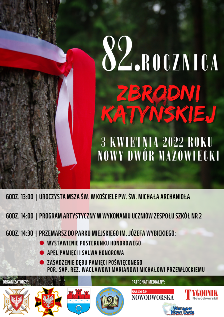 Zapraszamy na obchody 82. rocznicy Zbrodni Katyńskiej w dn. 3 kwietnia.