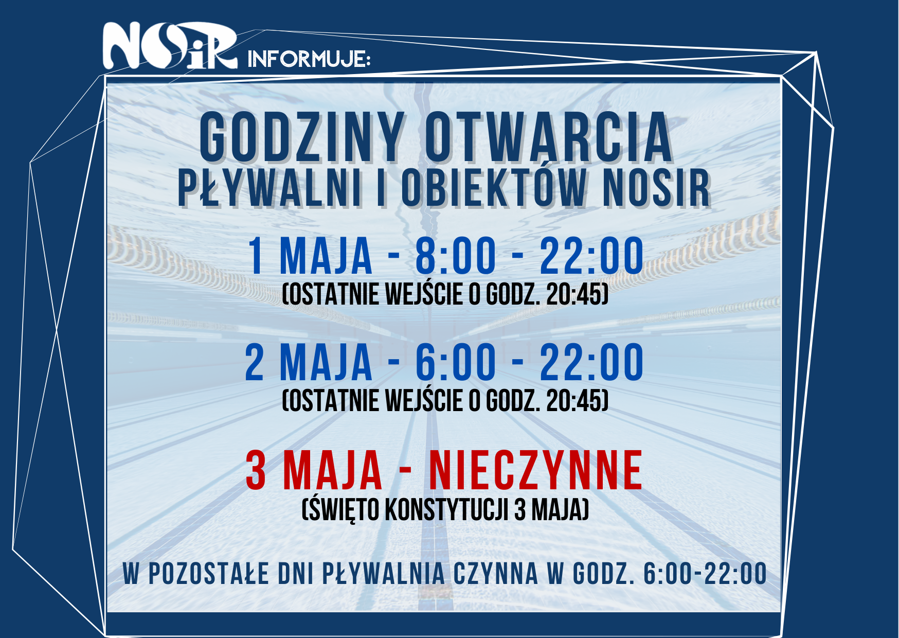 W związku ze zbliżającym się „weekendem majowym” obowiązują zmienione godziny pracy pływalni i obiektów NOSiR: