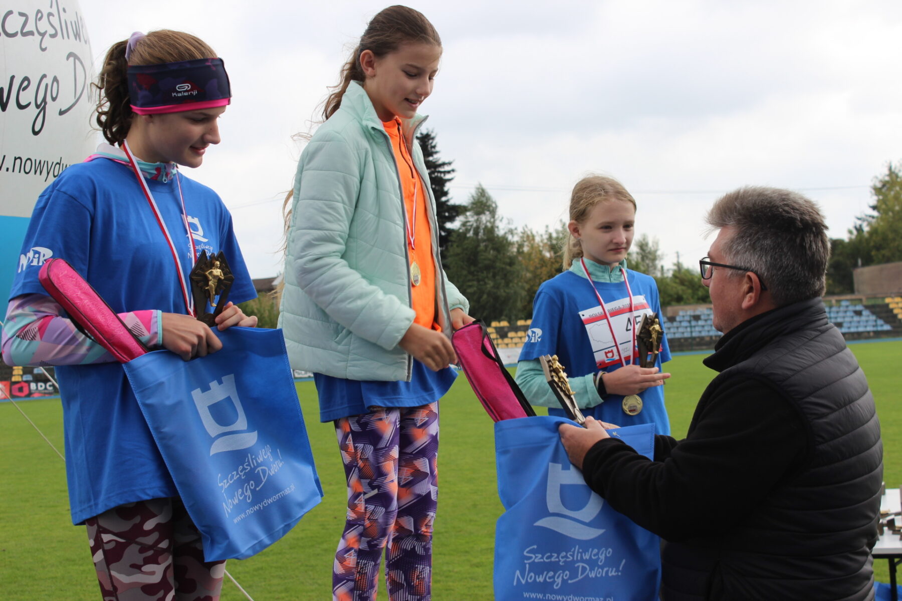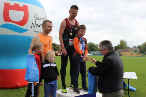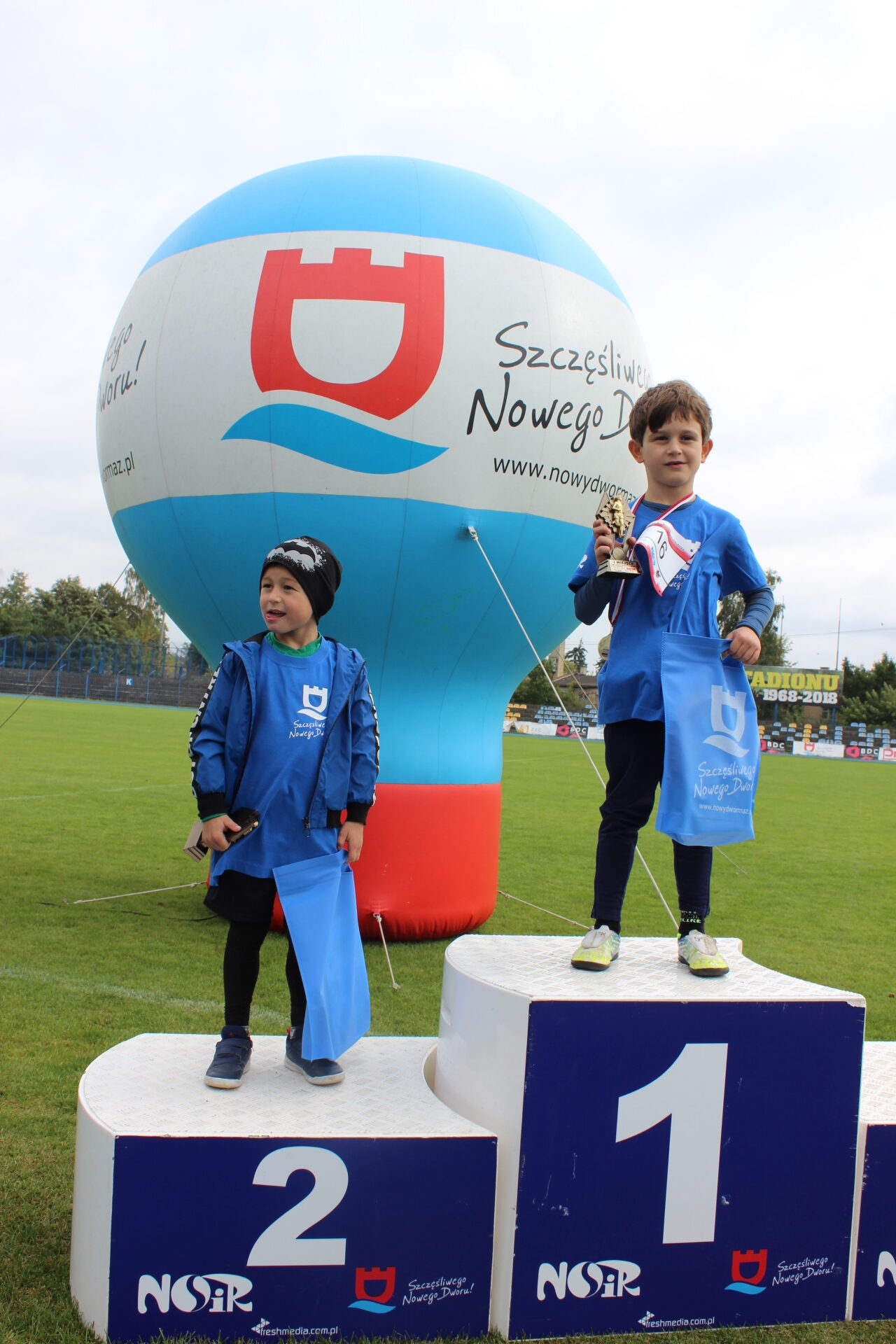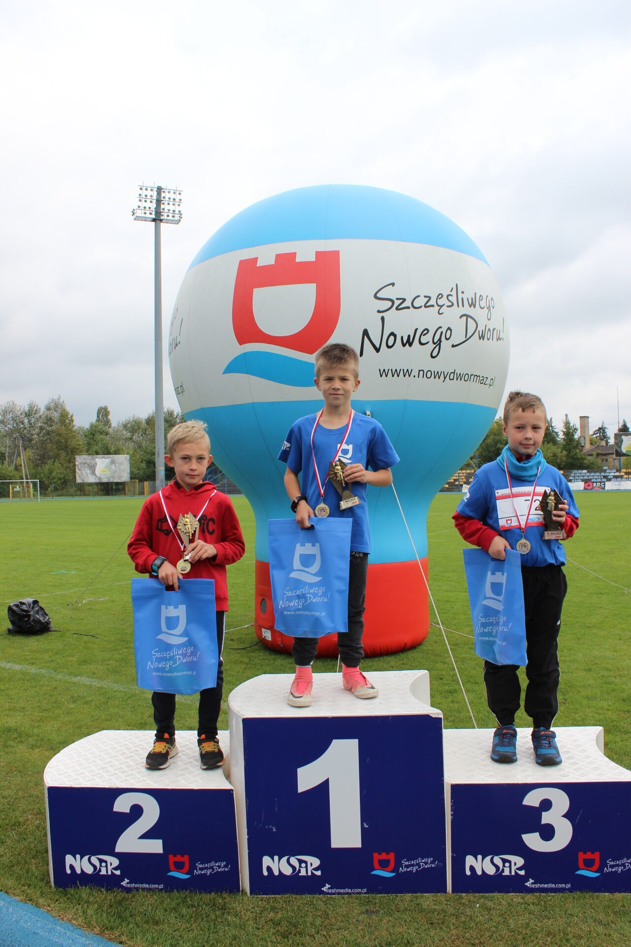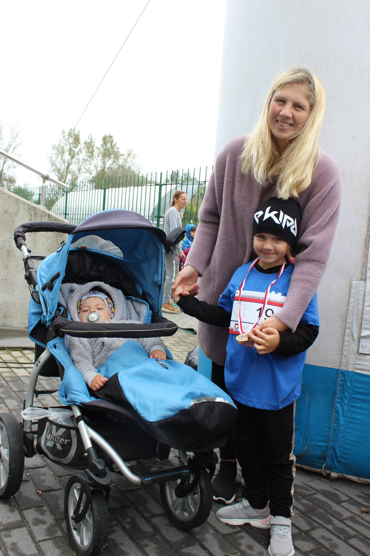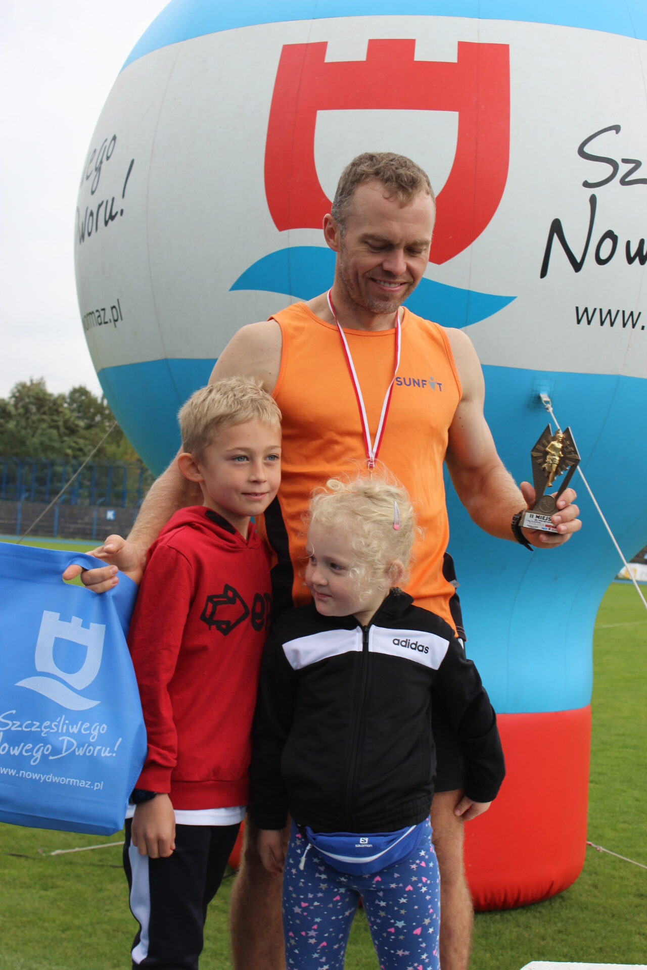 Pomimo początkowo dość jesiennej aury, humory i mobilizacja dopisywały, zwłaszcza wśród najmłodszych biegaczy, dla których to były pierwsze zawody. Przed każdym biegiem Pani Iwona Wicha przeprowadziła również rozgrzewkę. I tu chcielibyśmy wspomnieć, że Pani Iwona to 3-krotna Mistrzyni Europy Juniorów w biegu na orientację (w sztafecie i indywidualnie), a także wice mistrzyni świata w biegach po schodach. Co ciekawe, mąż pani Iwony, jest mistrzem świata w tej samej dyscyplinie. Wszyscy uczestnicy otrzymali pamiątkowe medale oraz wodę, natomiast najlepsi dodatkowo pamiątkową statuetkę oraz upominki, wręczane przez dyrektora NOSiR, Pana Dariusza Wąsiewskiego. Dodatkowo każdy chętny mógł spróbować swoich sił w biegach na orientację, które przeprowadzili PUKS „Młode Orły” Nowy Dwór Mazowiecki był to świetny sprawdzian przed Crossem Złotych Liści, który odbędzie się już 23 października
