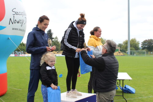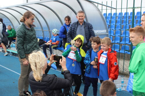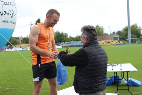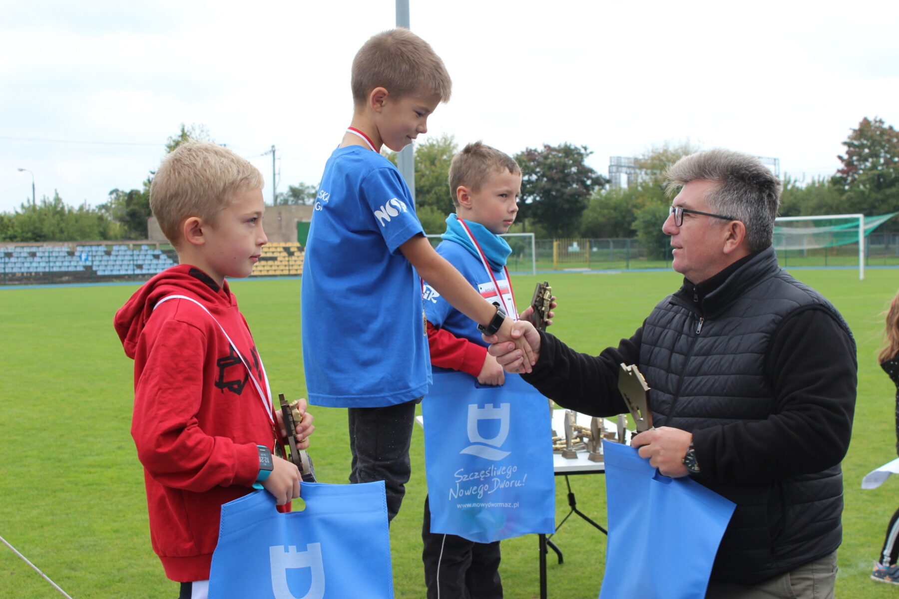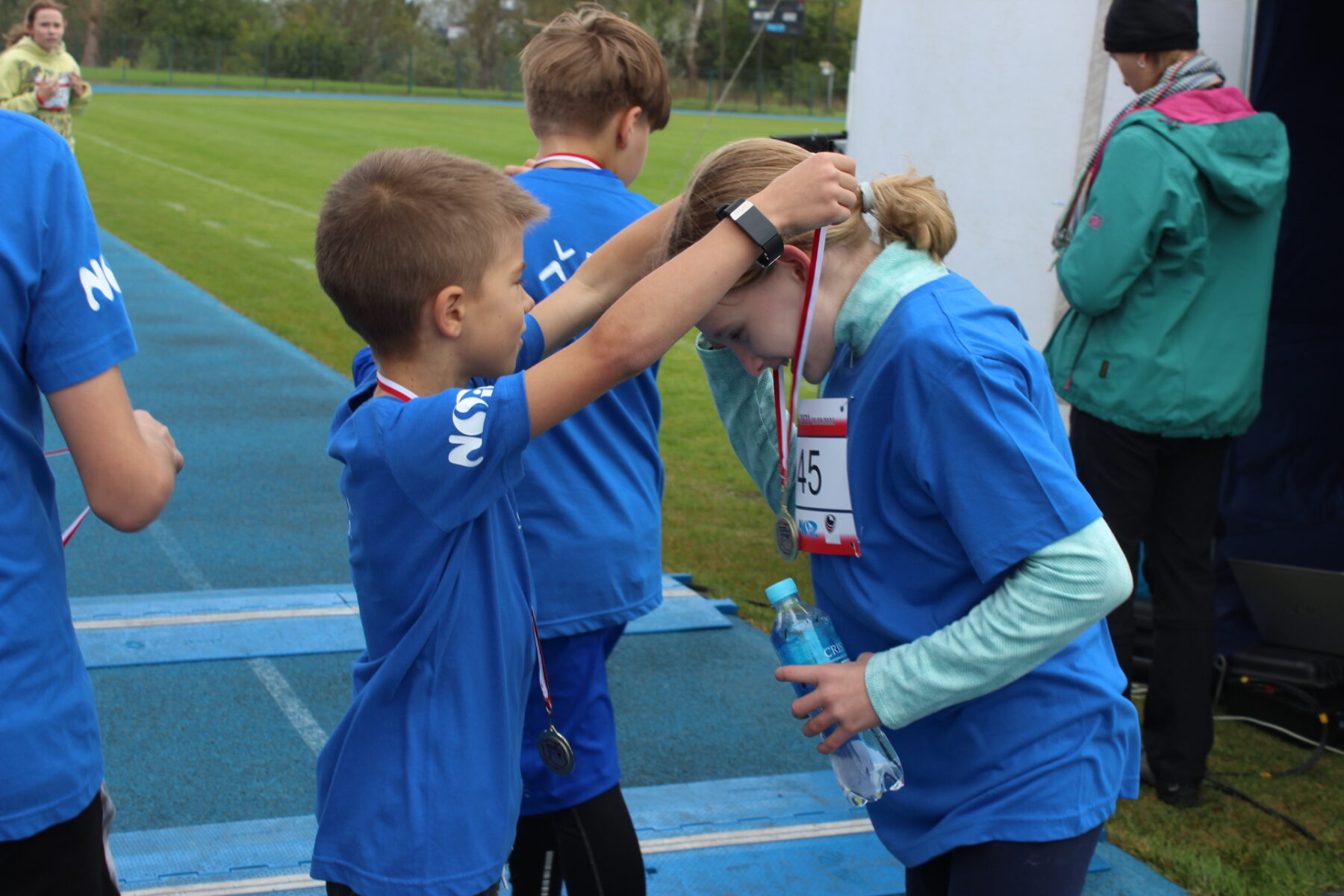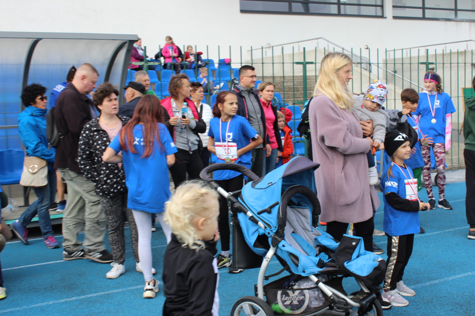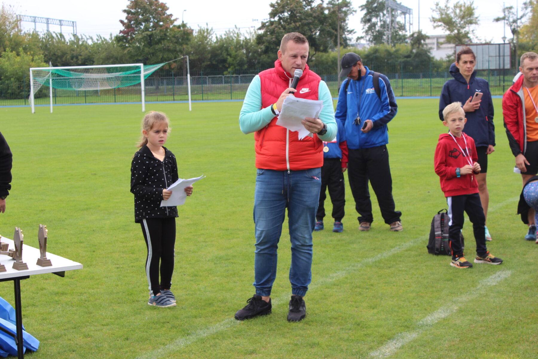Pomimo początkowo dość jesiennej aury, humory i mobilizacja dopisywały, zwłaszcza wśród najmłodszych biegaczy, dla których to były pierwsze zawody. Przed każdym biegiem Pani Iwona Wicha przeprowadziła również rozgrzewkę. I tu chcielibyśmy wspomnieć, że Pani Iwona to 3-krotna Mistrzyni Europy Juniorów w biegu na orientację (w sztafecie i indywidualnie), a także wice mistrzyni świata w biegach po schodach. Co ciekawe, mąż pani Iwony, jest mistrzem świata w tej samej dyscyplinie. Wszyscy uczestnicy otrzymali pamiątkowe medale oraz wodę, natomiast najlepsi dodatkowo pamiątkową statuetkę oraz upominki, wręczane przez dyrektora NOSiR, Pana Dariusza Wąsiewskiego. Dodatkowo każdy chętny mógł spróbować swoich sił w biegach na orientację, które przeprowadzili PUKS „Młode Orły” Nowy Dwór Mazowiecki był to świetny sprawdzian przed Crossem Złotych Liści, który odbędzie się już 23 października