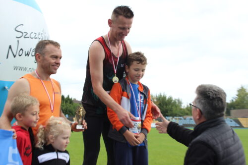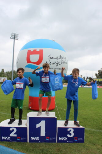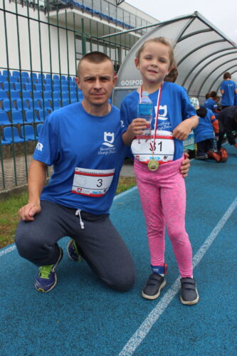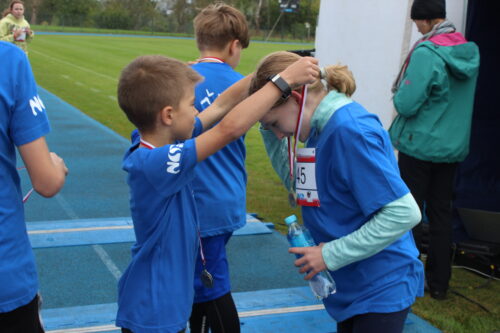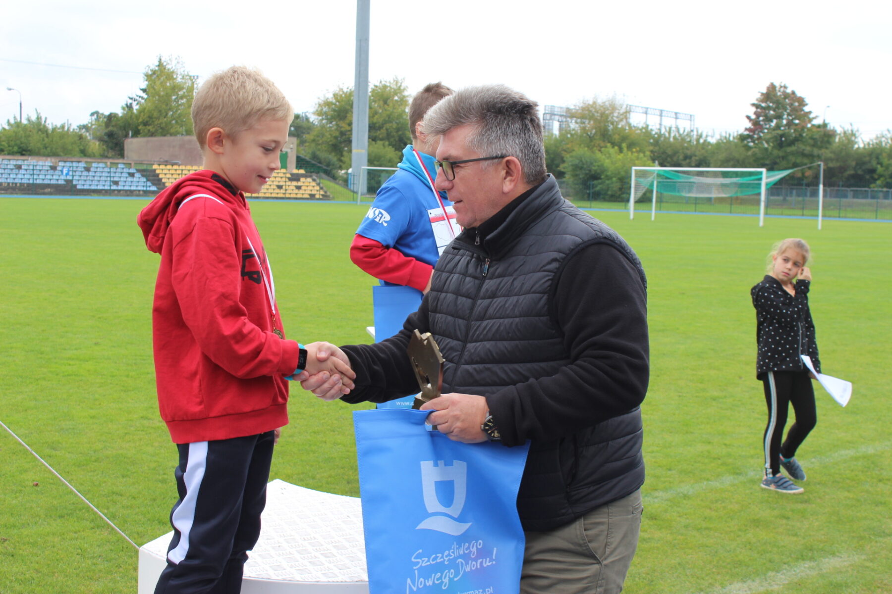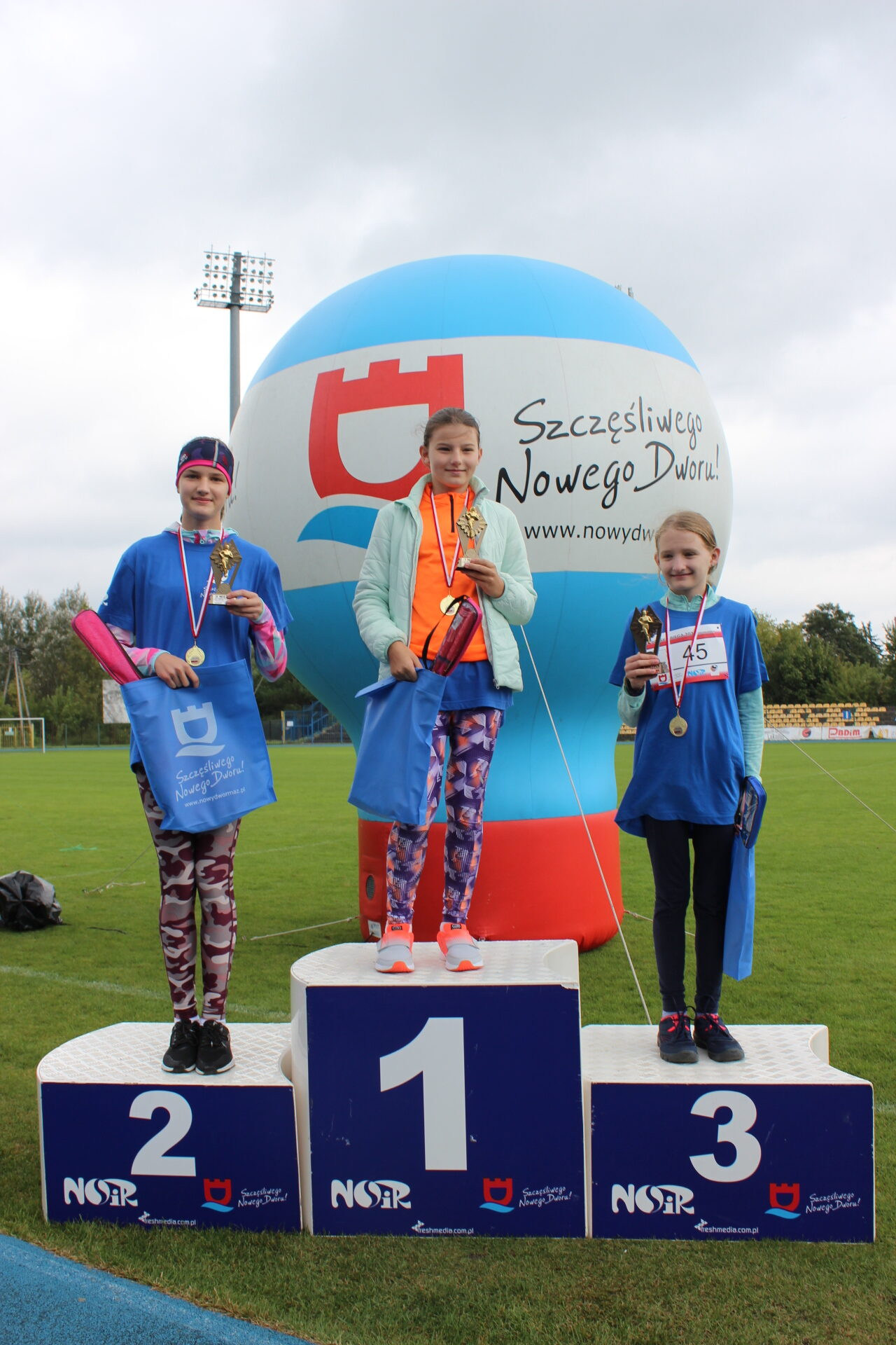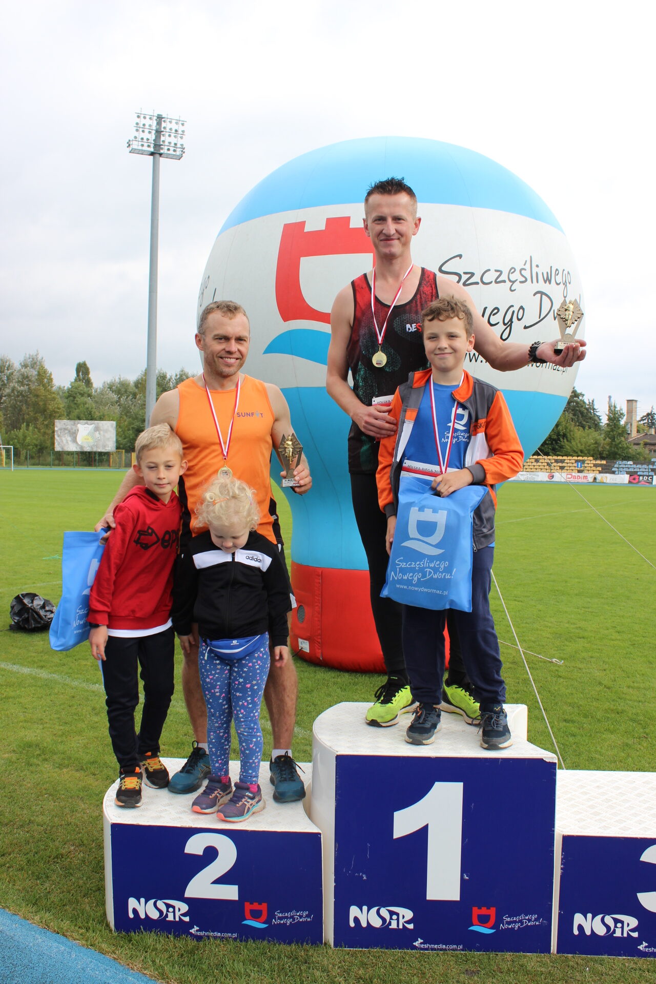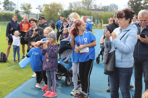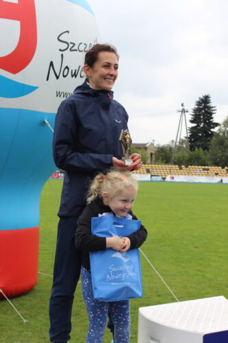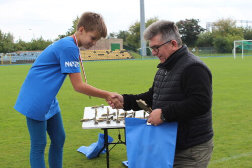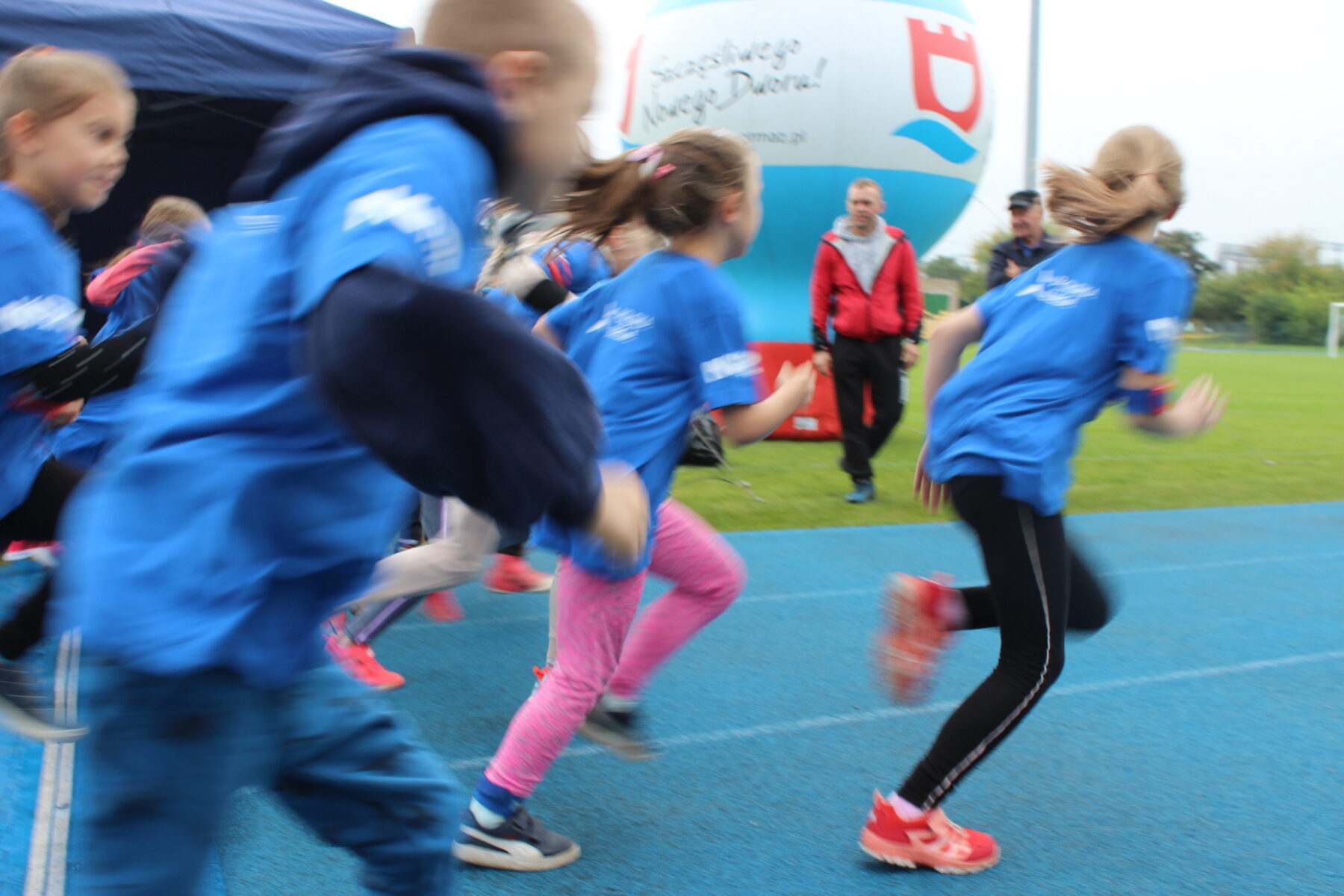 Pomimo początkowo dość jesiennej aury, humory i mobilizacja dopisywały, zwłaszcza wśród najmłodszych biegaczy, dla których to były pierwsze zawody. Przed każdym biegiem Pani Iwona Wicha przeprowadziła również rozgrzewkę. I tu chcielibyśmy wspomnieć, że Pani Iwona to 3-krotna Mistrzyni Europy Juniorów w biegu na orientację (w sztafecie i indywidualnie), a także wice mistrzyni świata w biegach po schodach. Co ciekawe, mąż pani Iwony, jest mistrzem świata w tej samej dyscyplinie. Wszyscy uczestnicy otrzymali pamiątkowe medale oraz wodę, natomiast najlepsi dodatkowo pamiątkową statuetkę oraz upominki, wręczane przez dyrektora NOSiR, Pana Dariusza Wąsiewskiego. Dodatkowo każdy chętny mógł spróbować swoich sił w biegach na orientację, które przeprowadzili PUKS „Młode Orły” Nowy Dwór Mazowiecki był to świetny sprawdzian przed Crossem Złotych Liści, który odbędzie się już 23 października