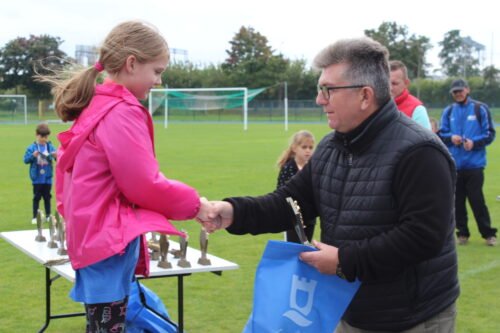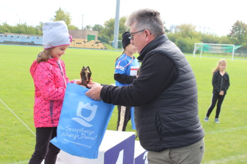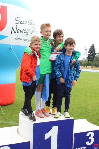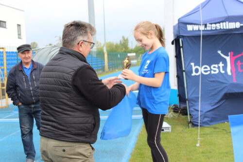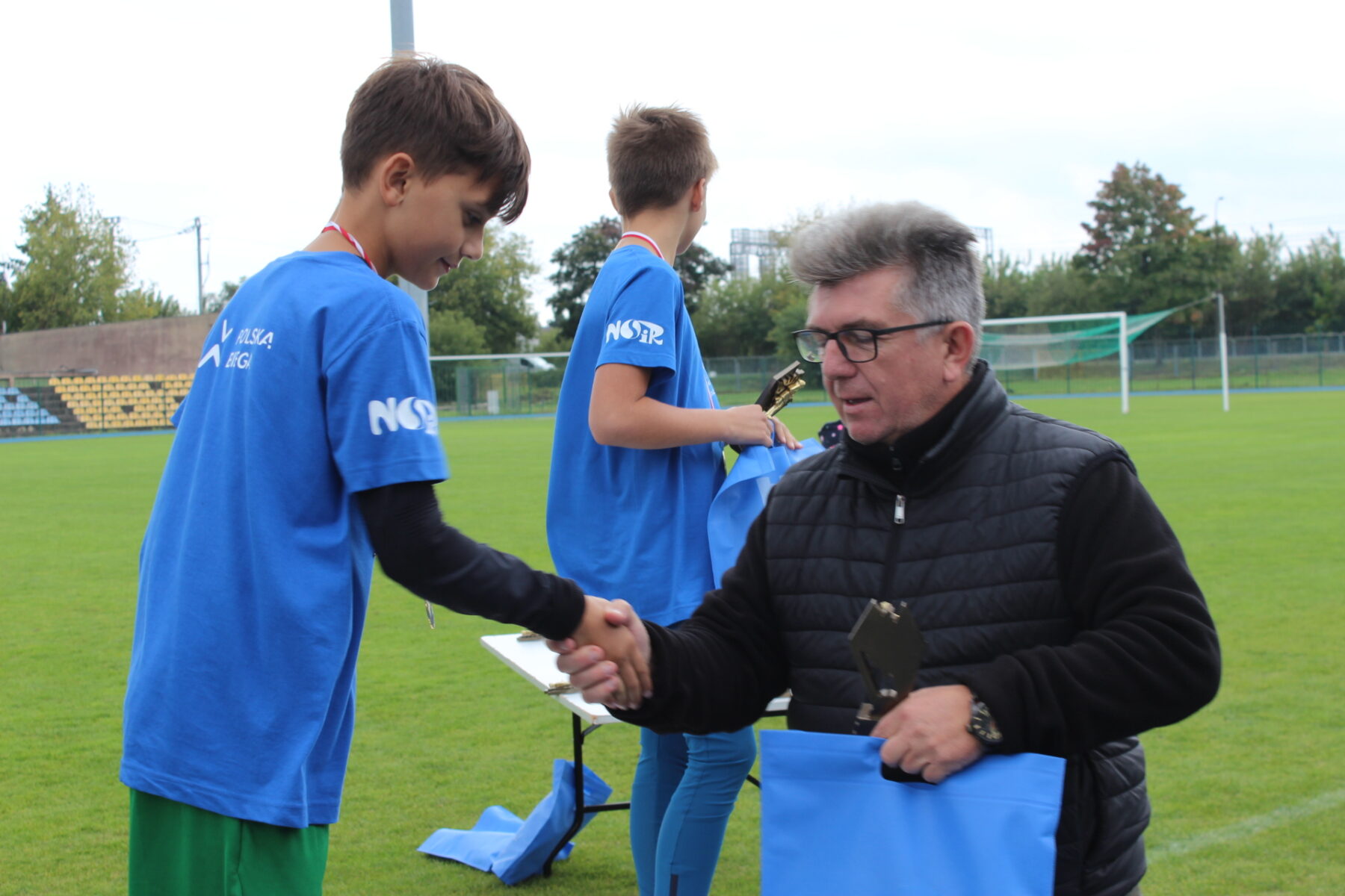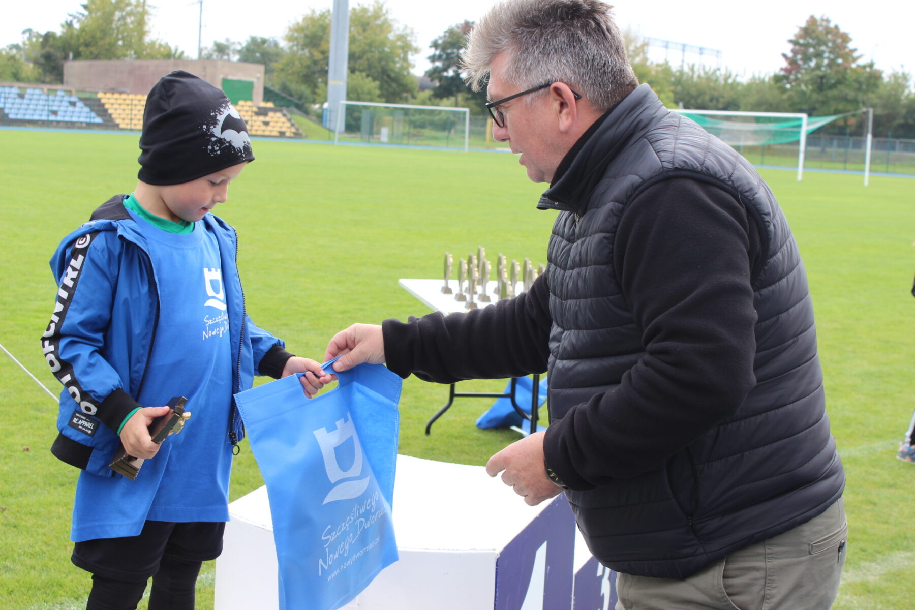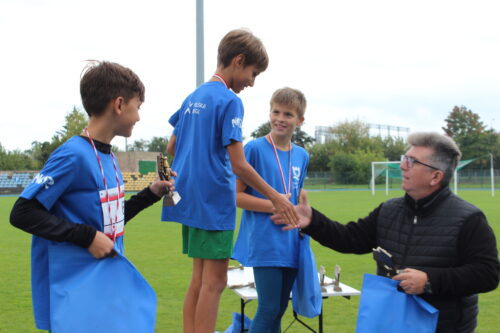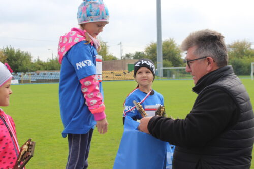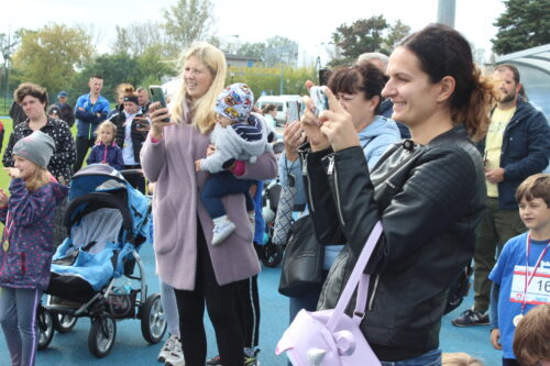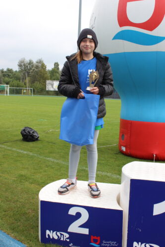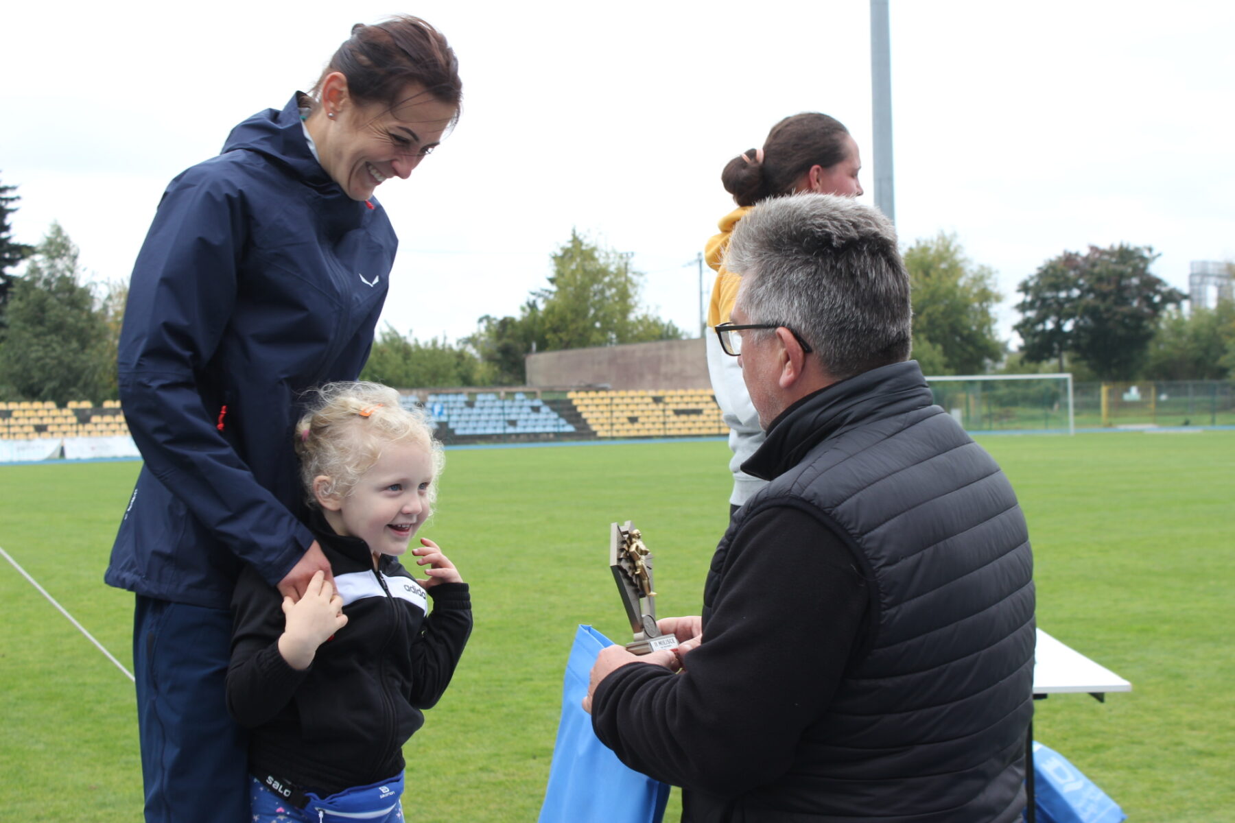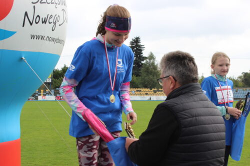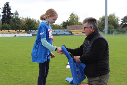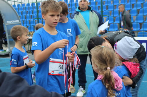 Pomimo początkowo dość jesiennej aury, humory i mobilizacja dopisywały, zwłaszcza wśród najmłodszych biegaczy, dla których to były pierwsze zawody. Przed każdym biegiem Pani Iwona Wicha przeprowadziła również rozgrzewkę. I tu chcielibyśmy wspomnieć, że Pani Iwona to 3-krotna Mistrzyni Europy Juniorów w biegu na orientację (w sztafecie i indywidualnie), a także wice mistrzyni świata w biegach po schodach. Co ciekawe, mąż pani Iwony, jest mistrzem świata w tej samej dyscyplinie. Wszyscy uczestnicy otrzymali pamiątkowe medale oraz wodę, natomiast najlepsi dodatkowo pamiątkową statuetkę oraz upominki, wręczane przez dyrektora NOSiR, Pana Dariusza Wąsiewskiego. Dodatkowo każdy chętny mógł spróbować swoich sił w biegach na orientację, które przeprowadzili PUKS „Młode Orły” Nowy Dwór Mazowiecki był to świetny sprawdzian przed Crossem Złotych Liści, który odbędzie się już 23 października
