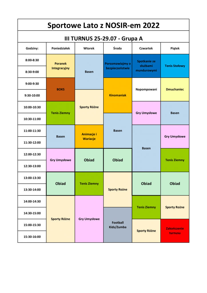 Poniżej zamieszamy informację dotyczące III turnusu 25-29 lipca: