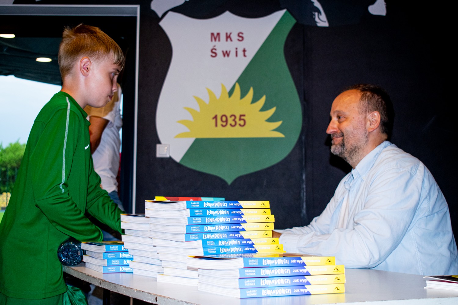 Właśnie z tym ostatnim tytułem autor odwiedził wychowanków Akademii Świtu Nowy Dwór Maz. Młodzi piłkarze zadawali dziennikarzowi dużo pytań nie tylko dotyczących Roberta Lewandowskiego, ale także ciekawiło ich, o kim D. Tuzimek napisze kolejną książkę. Po burzliwej dyskusji dziennikarz podpisywał i rozdawał młodym piłkarzom swoje książki.