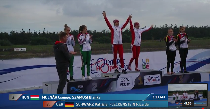 W tym dniu nasza zawodniczka wystartowała również w osadzie C-2 na 200 m, tym razem z Aleksandrą Jacewicz. Klaudia i Ola świetnie wystartowały i walczyły do końca o zwycięstwo, skończyło się na brązowym medalu, a różnice na mecie były w centymetrach.