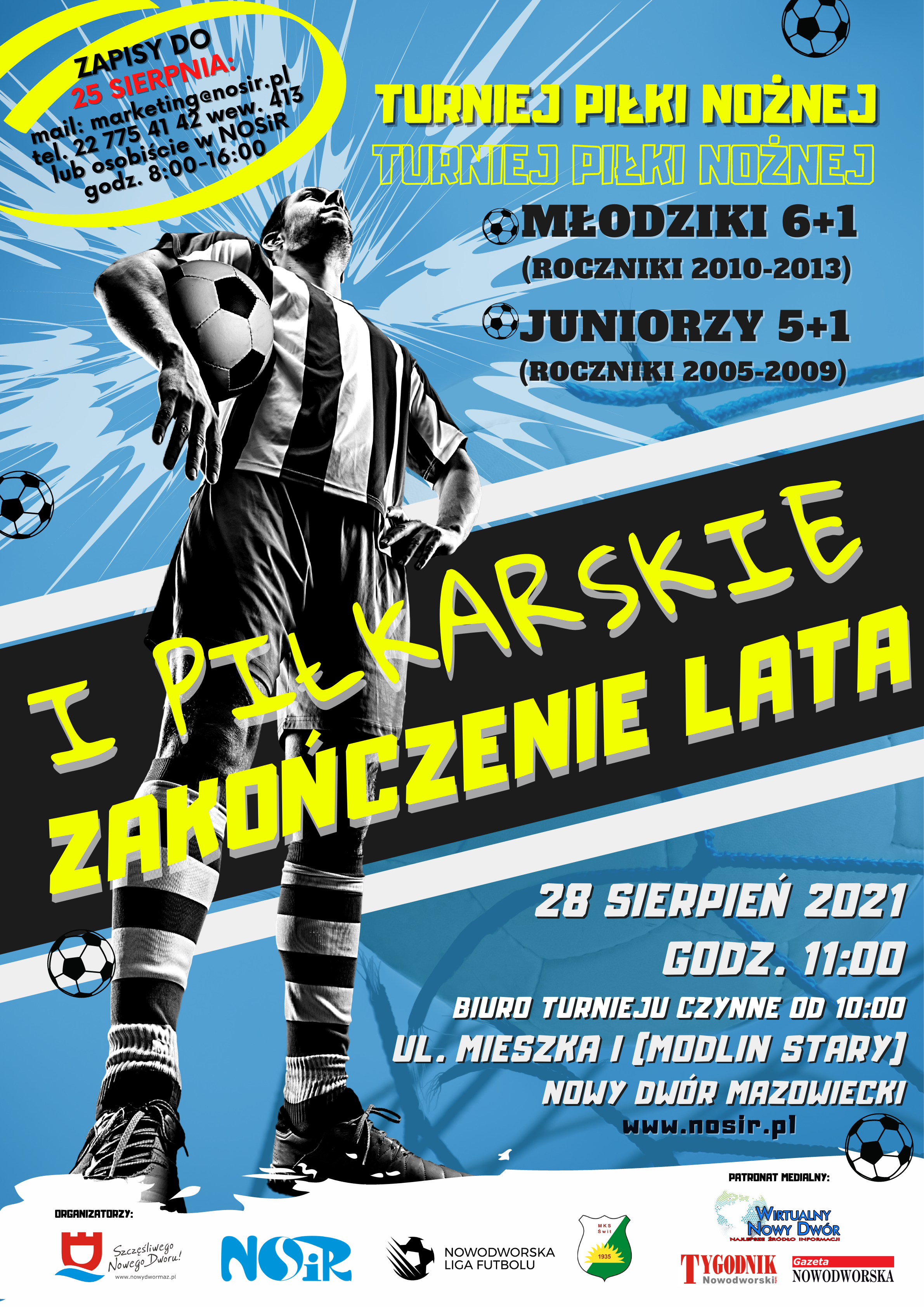 Turniej odbędzie się na boisku w Modlinie Starym przy ul. Mieszka I. Równocześnie będą rozgrywane zawody dla dwóch kategorii wiekowych: