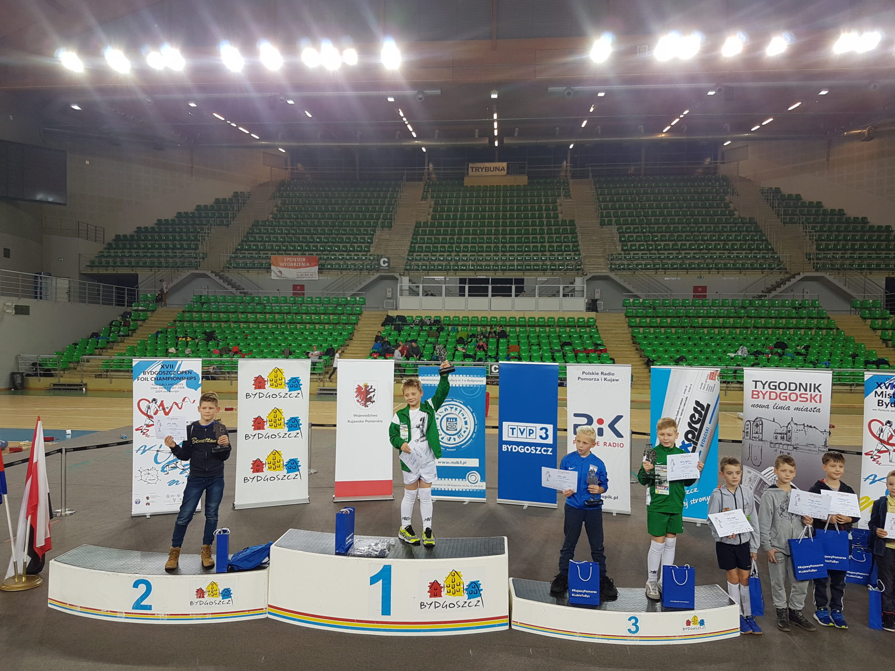 Kategoria chłopców w rocznikach 2009 – 2010 wystartowało dwóch zawodników. Adrian Drzewski i Antonii Fedorów , ten pierwszy po zaciętym boju o wejście do finałowej 8 zawodów przegrał niestety minimalnie jednym trafieniem i ostatecznie został sklasyfikowany na bardzo dobrym 11m. Natomiast Antek , który dzielnie walczył i wywalczył w Bydgoszczy fantastyczne 2m przegrywając tylko jedną walkę na zawodach rangi Międzynarodowej w ciężkim boju w walce finałowej.