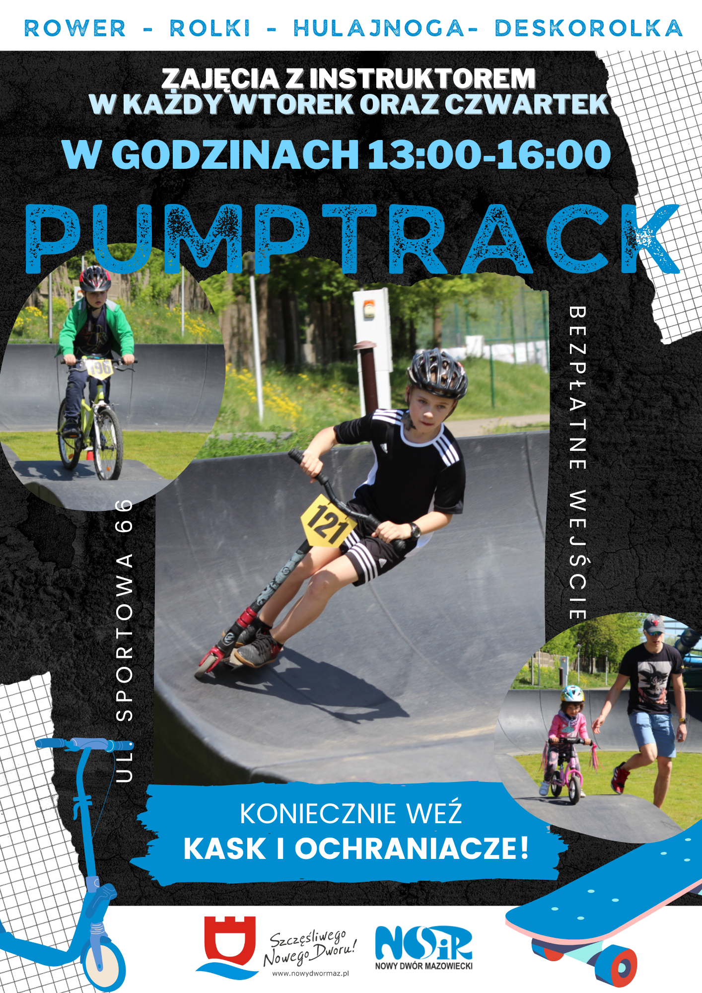 W wakacje, w każdy wtorek i czwartek zapraszamy na zajęcia z instruktorem na naszym pumptracku!