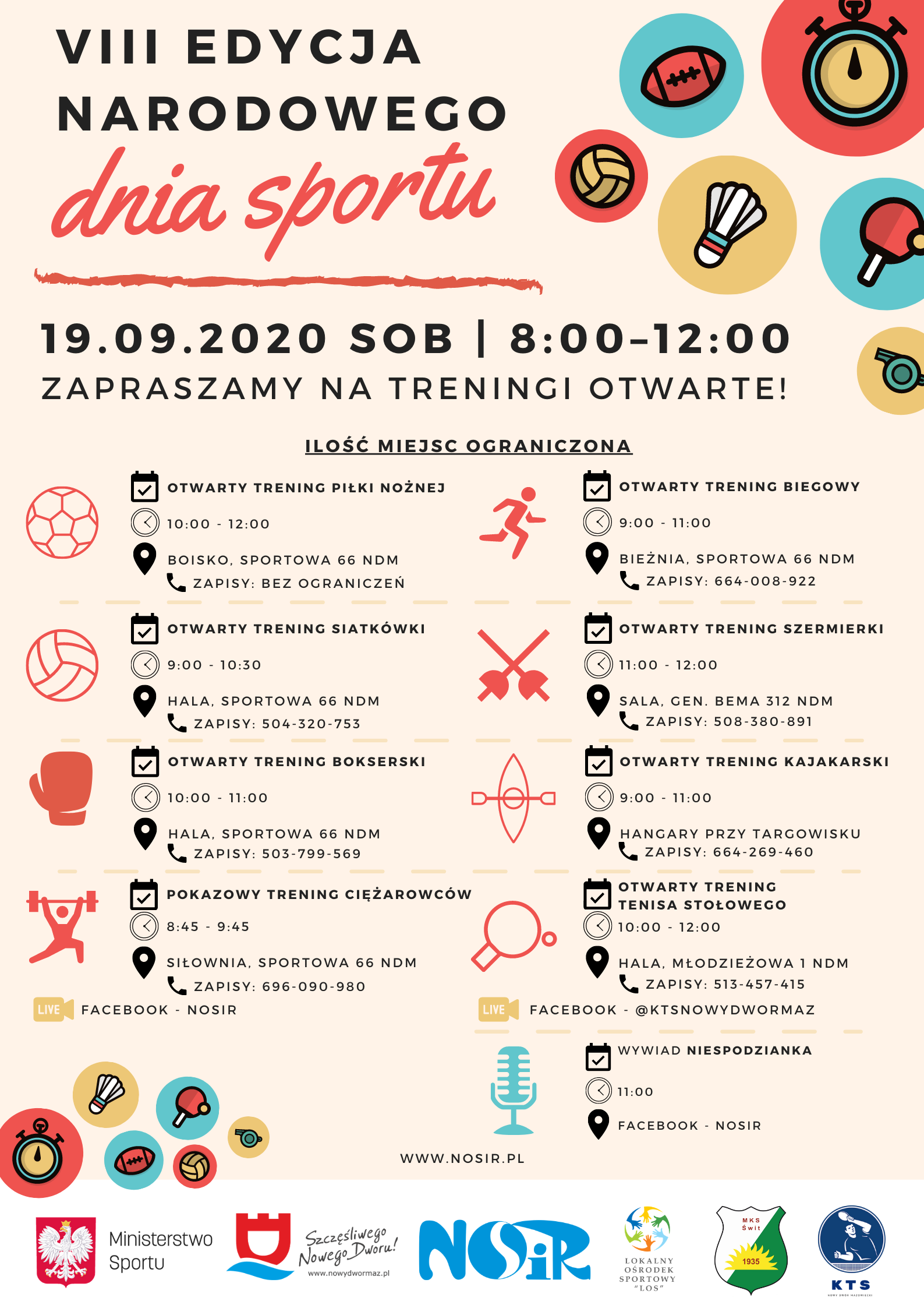 W ramach VIII edycji Narodowego Dnia Sportu zapraszamy na OTWARTE treningi naszych sekcji sportowych!