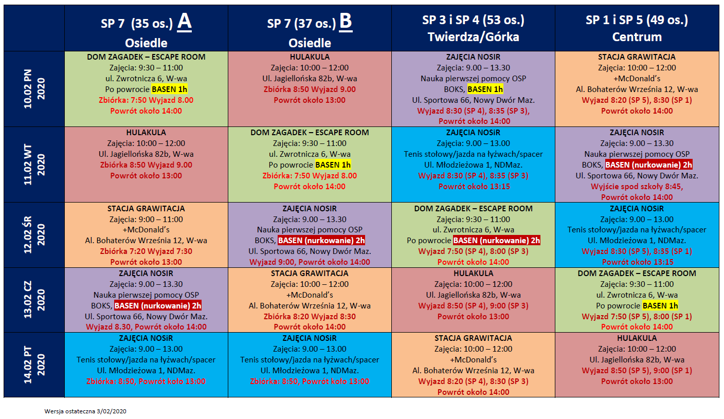 Już 10 lutego ruszy akcja „Zima z NOSiR-em”. Publikujemy pakiet ważnych informacji dla uczestników! Zapoznaj się z podziałem na grupy, godzinami wyjazdów i zajęć.